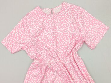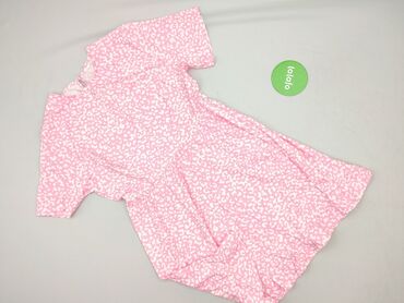 Sukienka damska z krótkim rękawem – pudrowy róż - Krój: prosta, lekko dopasowana, długość przed kolano. - Dekolt: w kształcie litery V. - Materiał: 100% poliester (miękka, lekko strukturyzowana tk...