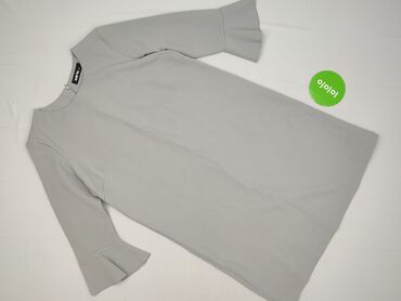 Sukienka damska MOON, rozmiar M. - Kolor: jasnoszary - Fason: prosta, lekko trapezowa; długość przed kolano - Rękawy: 3/4 z rozkloszowanymi falbanami - Dekolt: w kształcie litery V z czarną lamówk...Stan: