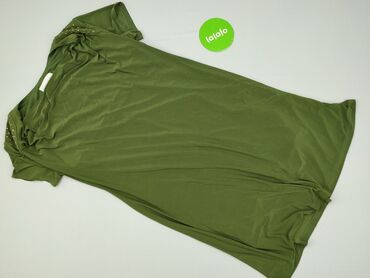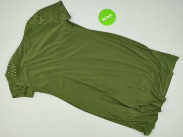 Sukienka/tunika dzianinowa w kolorze oliwkowej zieleni - Krój: prosta, lekko dopasowana, z krótkim rękawem - Dekolt: okrągły - Rozmiar z metki: XL (producent: Jonybek – widoczne na metce) - Długoś...