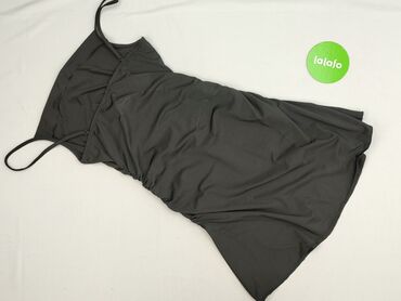 Czarna sukienka damska na ramiączkach, rozmiar M. - Fason: dopasowana, mini; dekolt w kształcie litery V, cienkie podwójne ramiączka - Z boku dekoracyjne, wielokrotne paski/wycięcia; z tyłu zamek ...