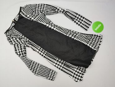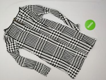 Sukienka damska z długim rękawem - Krój: dopasowany, mini, z okrągłym dekoltem - Wzór: klasyczna pepitka (czarno-biała) na panelu przednim; tył i rękawy gładkie, czarne - Materiał: elastyczna dzian...