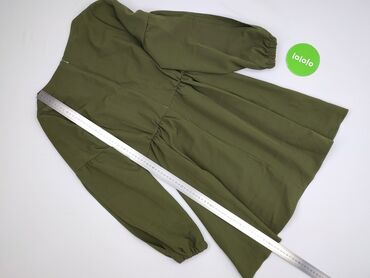 Sukienka damska, oliwkowa, Made in Italy Opis: - Prosty, lekko taliowany fason o długości do kolan - Rękaw 3/4 z szerokim mankietem - Okrągły dekolt - Ozdobne metalowe napy: po dwie na każdym mank...