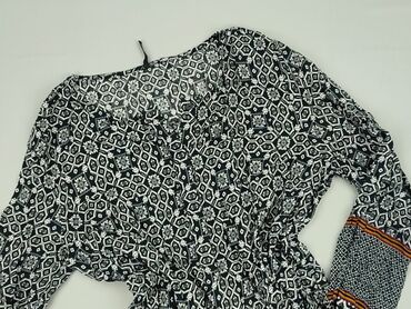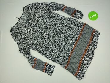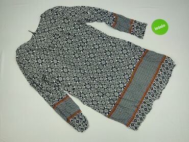 - Wzór: etniczny/geometryczny w czerni i bieli z dekoracyjnymi pasami w odcieniach rudo‑pomarańczowych na mankietach i dole