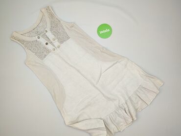 Sukienka damska bez rękawów w kolorze jasnego beżu/ecru. - Fason: lekko rozkloszowany, długość przed kolano, głęboki dekolt V z przodu. - Talia: szeroka, elastyczna gumka podkreślająca sylwetkę (m...