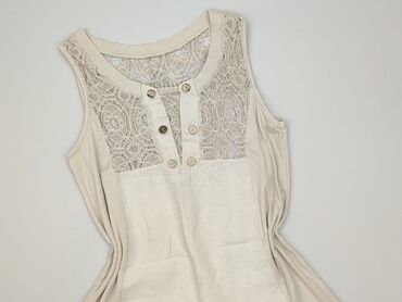 Sukienka koronkowa bez rękawów - Kolor: beżowo‑ecru - Materiał wierzchni: koronka kwiatowa - Podszewka: gładka, satynowa w kolorze beżowym - Skład tkaniny (metka): 65% cotton, 35% polyester - Deko...