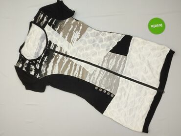 Sukienka damska, rozmiar L - Fason: lekko taliowana, z krótkim rękawem, dekolt okrągły - Długość: przed kolano (mini/średnia) - Materiał: miękka, elastyczna dzianina (przyjemna w dotyku, dobrze si...