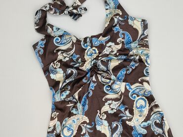 - Krój: wiązana na szyi (halter), lekko rozkloszowany dół, marszczenie na biuście