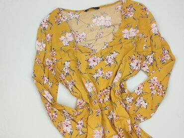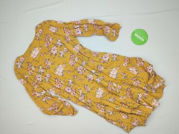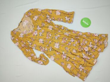 Sukienka mini damska z długim rękawem, w kolorze żółtym z szarym wzorem kwiatowym. Posiada dekolt w kształcie litery V, wiązany sznurkami i elastyczną talię, która podkreśla figurę. U dołu sukienka...