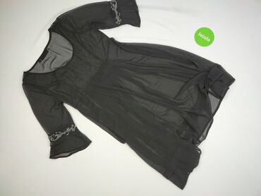 Sukienka damska KappAhl, rozmiar 40 - Krój: mini/tunika z długim rękawem - Dekolt: stójka z marszczeniem (elastyczna gumka) - Wzór: kwiatowy, kontrastowe jasne motywy na czarnym tle - Materiał: 10...