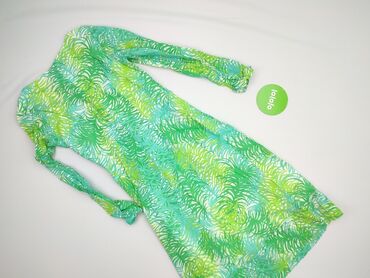 Sukienka damska z tropikalnym nadrukiem - Krój: kopertowy (wrap) z dekoltem w serek, długie rękawy, długość mini/przed kolano - Wzór: liście monstery i palmy oraz kwiaty hibiskusa w odcieniach zie...