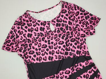 Sukienka damska w panterkę, rozmiar 2XL. - Fason: dopasowany do sylwetki, długość midi, zaokrąglony dekolt, rękaw 3/4. Z przodu drapowanie/kopertowe marszczenie, z tyłu rozcięcie ułatwiające chodz...