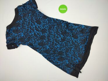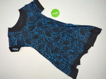 Sukienka damska z krótkim rękawem, w czarno‑niebieski wzór przypominający koronkę.