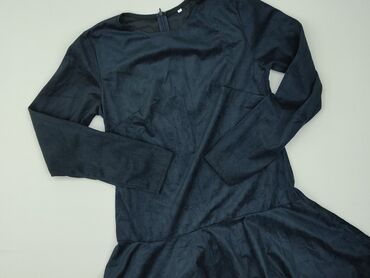 Sukienka damska z połyskiem, dzianina lurex - Fason: dopasowany, mini/midi (wydłużony dół z marszczeniem po bokach) - Rękaw: długi - Dekolt: zabudowany (okrągły) - Kolor: ciemny granat z drobnym, ...