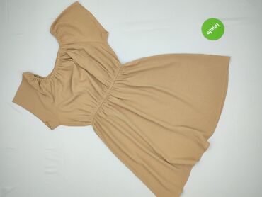 Sukienka damska att., rozmiar 36 - Kolor: jasny beż/nude - Fason: krótka, z odcięciem i szeroką, marszczoną gumą w talii; lekko rozkloszowany dół - Rękawy: krótkie - Dekolt: okrągły - Zapięcie: me...