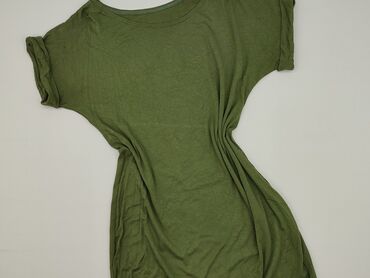 Sukienka/tunika dzianinowa w kolorze oliwkowej zieleni - Krój: prosta, lekko dopasowana, z krótkim rękawem - Dekolt: okrągły - Rozmiar z metki: XL (producent: Jonybek – widoczne na metce) - Długoś...