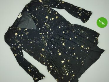 Sukienka WAREHOUSE – rozmiar 10 (UK) - Kolor: czarny - Wzór: srebrzyste/grafitowe gwiazdki na całej powierzchni - Fason: luźna góra, talia podkreślona wszytą gumką, dół lekko rozkloszowany - Rękaw...