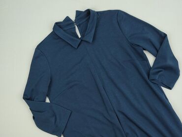 Sukienka damska, granatowa - Fason: prosty, lekko rozszerzany ku dołowi - Długość: za kolano (midi) - Rękaw: 3/4 - Dekolt: łódka - Materiał: dzianina bawełniana z domieszką elastanu (miękka, elast...Stan: