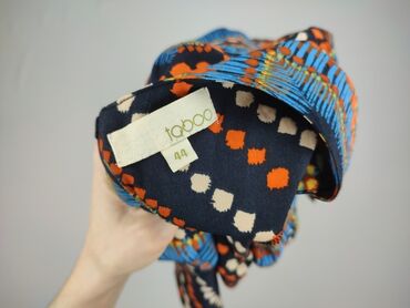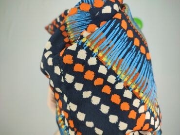 - Wzór: geometryczny/etniczny, wielokolorowy – granatowa baza z akcentami pomarańczowymi, niebieskimi i ecru.