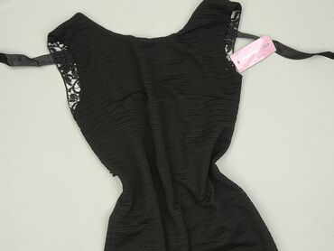 Sukienka damska koktajlowa, czarna, ołówkowa - Krój: dopasowany, długość przed kolano - Dekolt: zabudowany, bez rękawów - Materiał: elastyczna dzianina łączona z koronką - Wstawki: koronkowe panel...