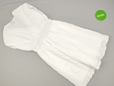 Biała sukienka SHEIN, rozmiar S (EU 36, US 4). - Lekka, zwiewna tkanina o subtelnej, pionowej fakturze - Skład: 100% poliester (metka na zdjęciu) - Krótki rękaw z marszczeniem - Dekolt w kształcie ...