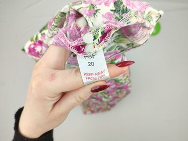 - Pielęgnacja wg metki: prać w 30°C, prasować w niskiej temp., prać z podobnymi kolorami; uwaga „KEEP AWAY FROM FIRE”