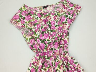 Sukienka damska F&F - Rozmiar: EU 38 (UK 10, US 6) – na metce - Fason: mini, z odcięciem i elastyczną gumką w talii, dekolt kopertowy z przodu, rękaw 3/4 z lekkim bufowaniem na ramionach - Wzór: w...