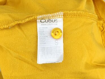 Sukienka damska Cubus, rozmiar XS - Fason: dopasowana, prążkowana dzianina, długość midi - Rękaw: krótki - Dekolt: okrągły - Wzór: poziome paski – żółte tło z białymi i czarnymi liniami - Materiał...