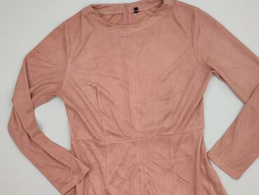 Sukienka damska w kolorze pudrowego różu, rozmiar S. - Krój: dopasowana góra z modelującymi cięciami, od talii rozkloszowany dół z kontrafałdami. - Rękaw: krótki. - Dekolt: okrągły. - Zapięcie: dł...