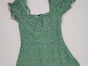 Sukienka damska Cropp, rozmiar S. - Kolor: zielony w drobne, białe kwiatki (stokrotki). - Krój: mini do kolan/za kolano (w zależności od wzrostu), lekko rozkloszowana. - Dekolt: kwadratowy z delika...