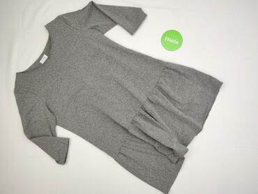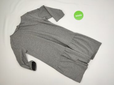 Sukienka damska z krótkim rękawem, rozmiar L. - Kolor: jasnoszary - Wzór: botaniczny z gałązkami, kwiatami i drobnymi motylami/ptaszkami w pastelowych kolorach - Krój: prosta, lekko pudełkowa; okr...