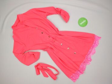 Sukienka damska, neonowy róż z paskiem - Krój: dopasowana, prosta mini - Dekolt: głęboki w kształcie litery V - Rękawy: krótkie - Tył: ozdobny pasek łączący ramiona - W talii: odpinany/wiążany sza...