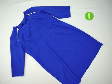 Sukienka damska, kobaltowa - Fason: prosta, lekko dopasowana, długość do kolan - Dekolt: okrągły - Rękawy: do łokcia z subtelną falbanką/przeszyciem przy mankiecie - Rozmiar z metki: 40 - Materiał...
