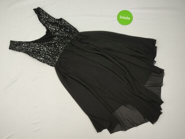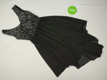 Sukienka damska Rise, rozmiar 18 (metka). - Krój: bez ramiączek (bandeau), góra dopasowana, dół lekko rozkloszowany z marszczeniami. - Góra pokryta błyszczącymi cekinami w odcieniach srebra, czer...