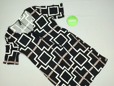Sukienka damska z geometrycznym wzorem - Krój: luźny, z odcięciem/ściągaczem w pasie, krótkie rękawy typu kimono - Dekolt: kopertowy V z klapką/kołnierzykiem - Długość: do kolan (przed kolano – za...