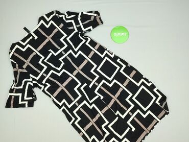 Sukienka damska w kolorze czarno-białym z geometrycznym wzorem. Ma okrągły dekolt i długie rękawy, co sprawia, że jest uniwersalna i nadaje się do noszenia na co dzień. Wzór składa się z nieregular...