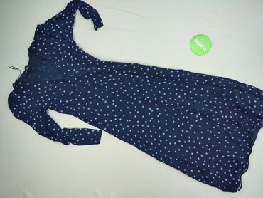 Sukienka w grochy – granatowa w białe kropki - Fason: kopertowy/dekolt w kształcie litery V z zakładką, podkreślona talia, lekko rozkloszowany dół - Rękaw: krótki - Długość: midi (za kolano; zależ...