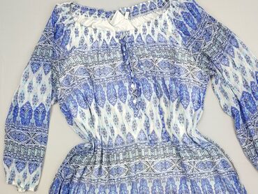 - Wzór: bogaty, etniczny/boho, w odcieniach niebieskiego, bieli i turkusu