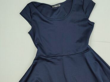 Sukienka damska, granatowa, rozkloszowana - Rozmiar: M (metka na zdjęciu) - Krój: dopasowana góra, od linii bioder rozkloszowany dół z panelami/cięciami, krótkie rękawy, okrągły dekolt - Zapięcie:...