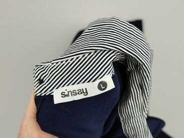 Sukienka koszulowa Sinsay, rozmiar XL - Fason: koszulowy, długość za kolano (widoczny pasek do przewiązania w talii) - Wzór: granatowo-białe pionowe paski - Zapięcie: półguzikowa plisa z dużymi, k...