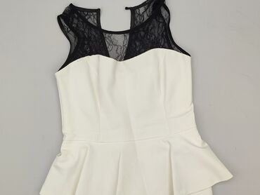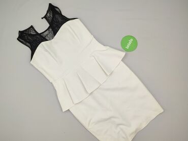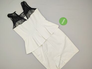 Sukienka damska dwukolorowa (biało-czarna) z koronkową aplikacją - Fason: dopasowany, ołówkowy, długość do kolan - Góra: biały top z krótkim rękawem i okrągłym dekoltem - Ozdoby: efektowna czarna ...