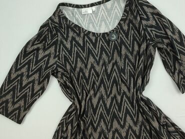 Sukienka dzianinowa Isolde, damska, rozmiar L - Kolor: czarny z szarymi i białymi wstawkami - Fason: dopasowana, długość mini/tuż przed kolano, rękaw 3/4 - Dekolt: półgolf/łódkowy - Detale: poziom...