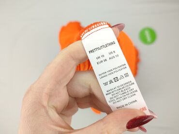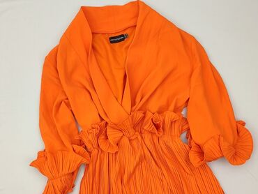 Sukienka PrettyLittleThing - Model: mini z rozkloszowanym dołem - Kolor: brzoskwiniowy/łososiowy - Dekolt: głęboki V - Rękawy: długie, lekko bufiaste, zakończone gumką - Talia: podkreślona, z zakł...
