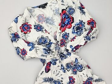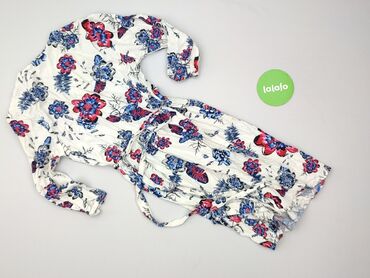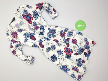 Sukienka damska Esmara - Rozmiar na metce: EU 40 (FR 42, GB/IE 12) - Kolor bazowy: ecru/śmietankowa biel - Wzór: kwiatowy w odcieniach niebieskiego i fuksji z czarnymi akcentami - Krój: kopertowy ...