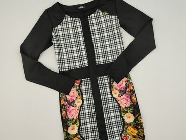 Sukienka damska C&A (Clockhouse) – rozmiar S - Fason: rozkloszowana, z dopasowaną górą i rozszerzanym dołem - Rękaw: długi - Dekolt: okrągły - Wzór: drobna czarno‑biała kratka (gingham) - Materiał...