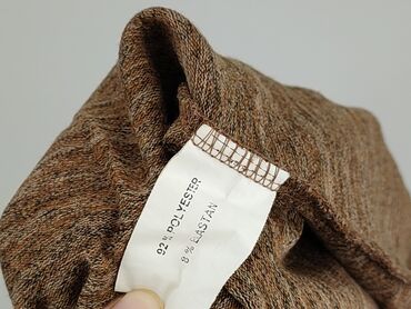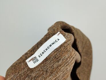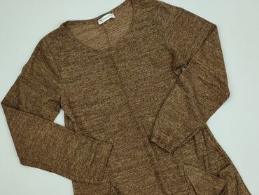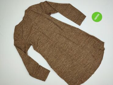 Dzianinowa sukienka damska, rozmiar 36. - Fason: tunikowy, lekko odcinany pod biustem - Dekolt: głęboki, zaokrąglony - Rękaw: krótki - Kolor: ciemny brąz/melanż - Detale: dwie naszywane kieszenie z...