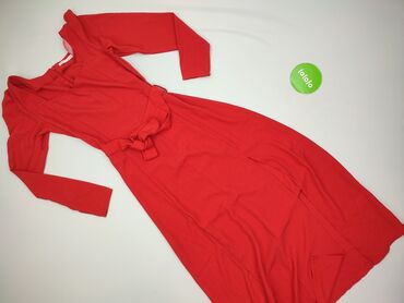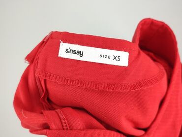 Sukienka damska Sinsay, rozmiar M - Kolor: intensywna czerwień - Krój: dopasowana góra z odcięciem w talii, rozkloszowany dół - Dekolt: okrągły - Rękawy: krótkie z efektownymi wycięciami/nakładany...