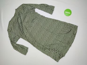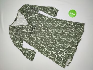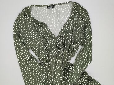 Sukienka damska Janina - Model: z metką producenta - Rozmiar: EU 42 (IT 46, FR 44) – na metce - Kolor: oliwkowa z białym, nieregularnym wzorem „kropek” - Fason: kopertowa góra z dekoltem w serek; ...