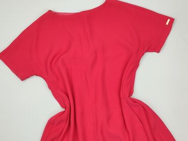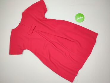 Sukienka damska w kolorze intensywnej fuksji/różu. Krój prosty, lekko rozszerzany ku dołowi, z krótkim rękawem i okrągłym dekoltem. Z tyłu dekoracyjna zakładka zakończona kokardą oraz dyskretny zamek przy karku dla łatwiejszego zakładania. Materiał gładki, średniej grubości, miękko się układa i nie prześwituje. Długość sięgająca okolic kolan (mini/midi w zależności od wzrostu). Minimalistyczne przeszycia, niewielka metalowa wszywka przy rękawie. Idealna na co dzień, do pracy lub na wyjście – łatwo łączy się z klasycznymi dodatkami.