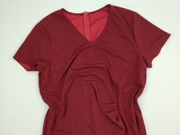 Sukienka damska ołówkowa, kolor głęboki bordowy. - Krój: dopasowany, podkreślający talię, długość za kolano (midi). - Rękawy: do łokcia. - Dekolt: okrągły. - Zapięcie: kryty zamek z tyłu + małe...Stan: