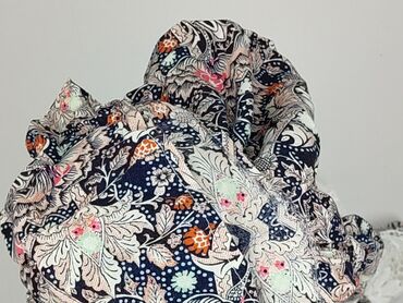- Dół i korpus: lekki materiał z orientalno‑kwiatowym wzorem w odcieniach granatu, beżu, różu i pomarańczu.